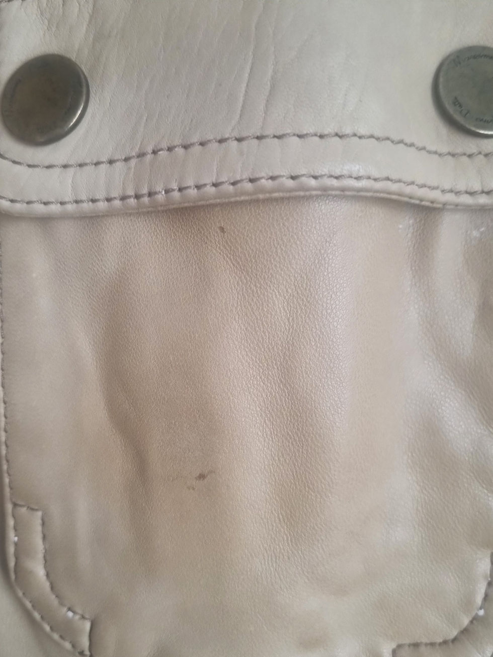 As shown in the detailed photos, there are a few minor, small spots on the leather surface.
